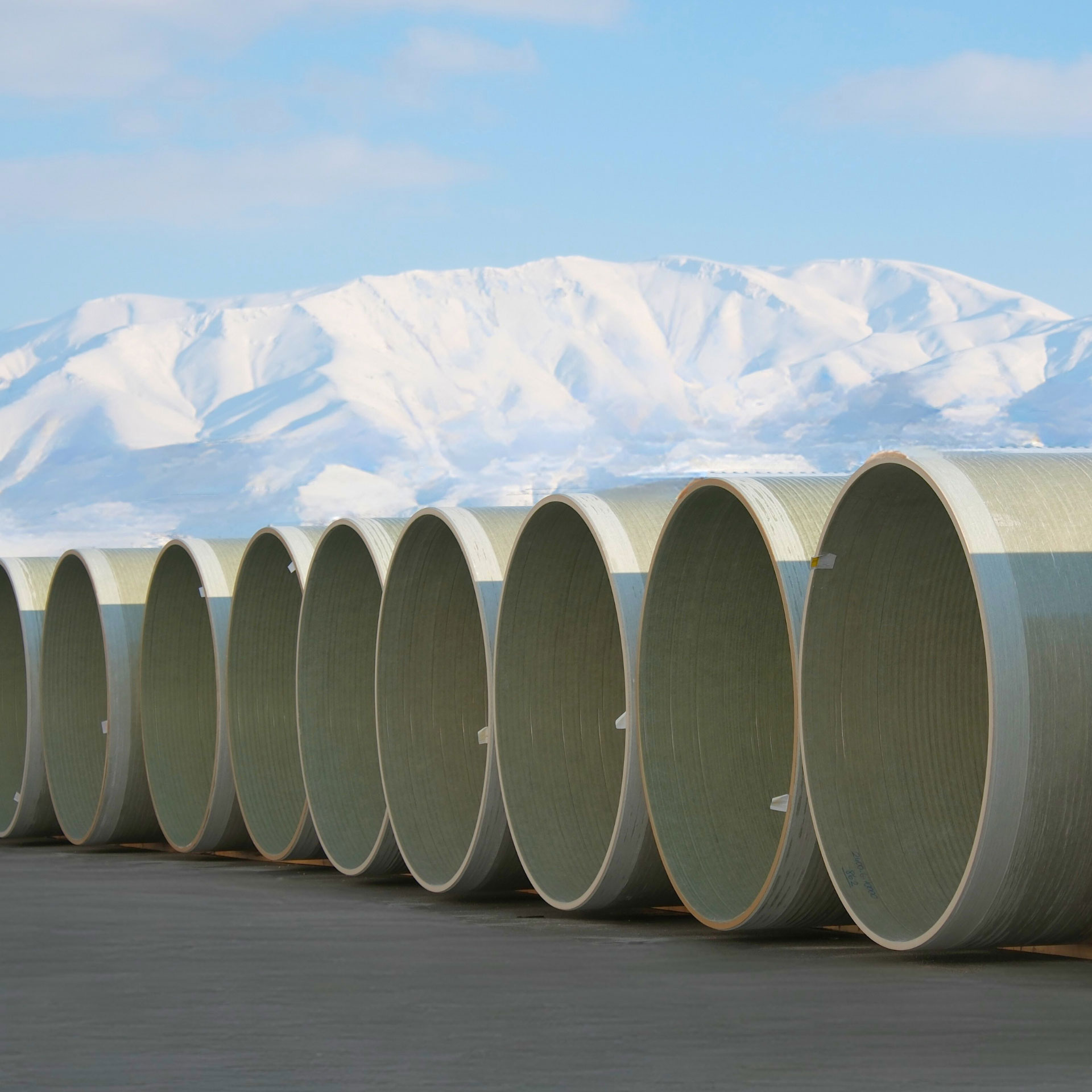 يتم إنتاج أنابيب GRP الخاصة بنا باستخدام آلات اللف المستمر للألياف (CFW)، بأقطار تتراوح بين DN300 mm وDN4000 mm، لتوفير حلول مخصصة لمختلف مشاريع البنية التحتية.