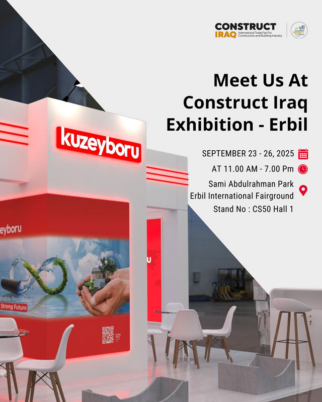 Between September 23–26, we took our place at the Iraq Construction Fair held in Erbil as Kuzeyboru. We presented our innovative pipe systems for infrastructure and superstructure projects and shared our sustainable and environmentally friendly solutions with our visitors.